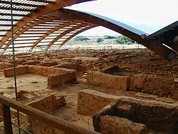 - El barrio Λ estaba al este del ágora. En él se han excavado tres casas pertenecientes al periodo neopalacial y que continuaron siendo utilizadas en el periodo micénico.