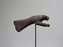 - Edificio B: más pequeño que el anterior, tenía 540 metros cuadrados. En él se hallaron diversos objetos como dos grandes anclas de piedra, que quizá tuvieran un carácter votivo, y cerámica. Al igual que el anterior también posee almacenes y documentos en escritura jeroglífica.[11]