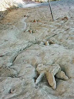 ![]() Rastro del terópodo «Atila», yacimiento de Costalomo, Salas de los Infantes (Burgos, España) | ||
