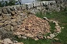 Los restos de teja de arcilla cocida son abundantes. Ya entonces eran tejas del tipo curvo.