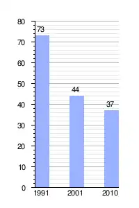 Gráfica de evolución demográfica de Yala Laubat entre 1991 y 2010 |