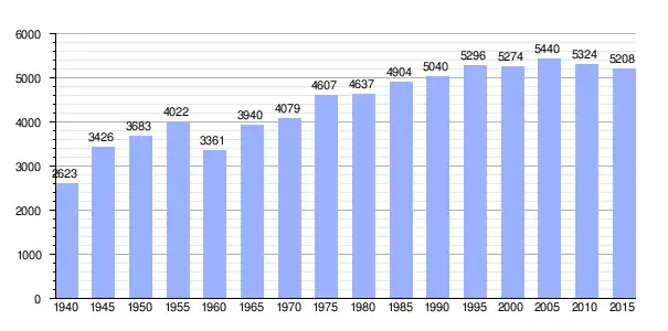 Gráfica de evolución demográfica de Yamanakako entre 1940 y 2015 |