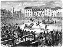 Aparecen los problemas cuando el subprefecto prohíbe por mandato del gobierno central que la fiesta sea a la manera «india», es decir, con la intervención del público como toreros espontáneos y con el uso de dinamita para matar al animal. Los principales mistis sugieren que la fiesta sea en adelante con la participación de un torero profesional y que se sigan las reglas de la tauromaquia española.[11][12]