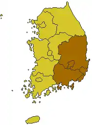 La región incluye las provincias modernas de Gyeongsang del Norte y del Sur y las ciudades autónomas de Busan, Daegu y Ulsan. El nombre regional se usa (con una ortografía ligeramente diferente) para el nombre de la Universidad de Yeungnam.