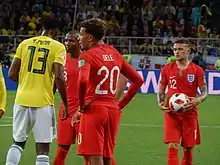 El 3 de julio, en octavos de final, marcó el gol del empate al minuto 93 contra Inglaterra,[21] llevando el partido a la prórroga donde caerían eliminados por penaltis. Mina terminaría como goleador de Colombia en el mundial con tres goles.