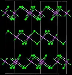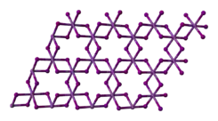 Yoduro de bismuto adopta una estructura de cristal distintivo, con centros de yoduro ocupando un hexagonal empaquetado, más cercano de celosía, y centros de bismuto ocupando ya sea ninguno o dos tercios de los huecos octaédricos (alternando por capa), por lo que se dice que ocupa un tercio de los agujeros octaédricos totales.[4] [5][6]