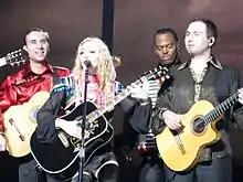 Madonna no volvió a presentarla hasta su gira Sticky & Sweet Tour (2008-2009), donde formó parte del tercer segmento del espectáculo, de temática gitana.[100] Apareció en el escenario portando un vestido negro, diseñado por la firma Givenchy, con cintas de colores alrededor de su cuello y medias negras.[100] La actuación consistió en una versión acústica mientras tocaba la guitarra sentada en un banco;[101] una banda rumana de cuatro músicos la acompañó tocando el violín y la guitarra acústica y en las pantallas de fondo se mostraban escenas de la película.[102][103] Su voz obtuvo comentarios positivos por parte de la prensa. Tal es el caso de Scott Cronick, de The Press of Atlantic City, quien señaló que mostró sus habilidades vocales, y Matthew Palm, del diario Orlando Sentinel, que dijo que «demostró que su voz no siempre necesita de varios trucos llamativos».[104][105] De modo similar, el crítico Joey Guerra, en su reseña para el Houston Chronicle, la calificó como «emotiva».[103] Ricardo Baca, del Denver Post, escribió que sonó «valerosa» y la interpretación fue «acertada y maravillosa con su acompañamiento de cuerdas».[106] En los conciertos ofrecidos en Buenos Aires, también cantó «Don't Cry for Me Argentina».[107] Las presentaciones de ambos temas se incluyeron posteriormente en el álbum en vivo Sticky & Sweet Tour, que se filmó en dicha ciudad.[108]