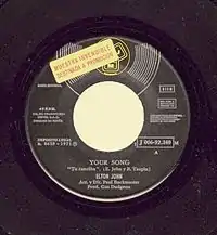 «Your Song» es una canción compuesta e interpretada por el músico británico Elton John con letra de Bernie Taupin, su antiguo colaborador. Apareció originalmente en el segundo álbum de estudio homónimo de John (lanzado en 1970). La canción fue lanzada en los Estados Unidos en octubre de 1970 como el lado B de «Take Me to the Pilot». Ambas canciones recibieron difusión radial, pero los «disc-jockeys» prefirieron «Your Song» y reemplazaron a «Take Me to the Pilot» como lado A, llegando finalmente al número ocho en la lista de Billboard. La canción también alcanzó el puesto número siete en la lista de UK Singles Chart, así como la clasificación entre los 10 primeros en varios otros países.