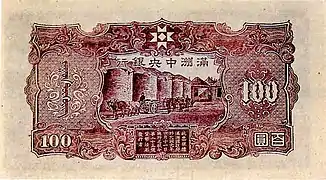 Los billetes emitidos fueron de cinco tipos: cien, diez, cinco y un yuan y cinco chiao (medio yuan), los cuales representaban a los miembros de la dinastía Qing en el anverso. Como resultado de las presiones inflacionarias que soportaron las zonas controladas por Japón hacia el final de la Segunda Guerra Mundial, se emitió un billete de 1.000 yuan en 1944.