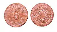 Monedas | 5 li, 1, 5 fen, 1 chiao | |