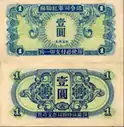 La circulación de dinero en China era un caos, no existía un solo centro de emisión. En Manchuria, circulaban el yuan de Manchukuo y divisas de otros gobiernos títeres chinos. Para pagar las compras de alimentos y otros bienes y servicios necesarios que proporcionar a las unidades militares soviéticas, el mando militar soviético lanzó la liberación de dinero militar. Se emitieron billetes de 1, 5, 10 y 100 yuanes, impresos en la URSS. En billetes con patrones de colores: inscripciones en jeroglíficos.