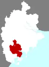 Se encuentra situada en el sur de la provincia, cerca de la frontera con la provincia de Guangdong y de la costa del mar de China Meridional.