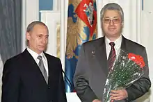 El presidente Vladímir Putin y Yuri Baturin en la entrega del premio Héroe de la Federación Rusa en 2001.