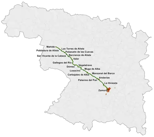 La Hiniesta Andavías Palacios del Pan Manzanal del Barco Carbajales de Alba Muga de Alba Losacino Vegalatrave Domez Gallegos del Río Valer Bercianos de Aliste San Vicente de la Cabeza Palazuelo de las Cuevas Las Torres de Aliste Pobladura de Aliste | |