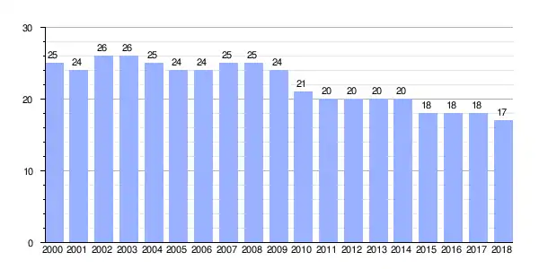 Gráfica de evolución demográfica de Zaín entre 2000 y 2018 |