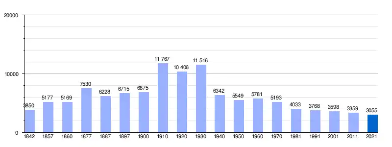 Población de derecho (1842-1991, excepto 1857 y 1860 que es población de hecho) o población residente (2001-2011) según los Censos de Población desde 1842. |
