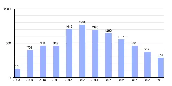 Gráfica de evolución de Deuda viva del Ayuntamiento de Zalamea la Real entre 2008 y 2019 |