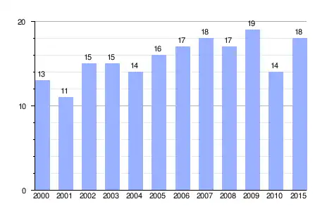 Población de derecho (2000-2015) según los censos de población del INE a 1 de enero de cada año.[1] |