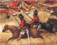 Sin embargo los santiagueños se recuperaron a medida que las armas de fuego iban aumentando las bajas entre la caballería riojana, que llegó a efectuar diez cargas,[6] en tanto que el terreno y las trincheras limitaban la peligrosidad de los jinetes y sus lanzas.[11][7][12] Uno de los versos recopilados de la "Zamba de Vargas" utiliza con acierto la expresión "lanzas contra fusiles" para definir la característica esencial que adoptó la batalla.[12][11] El propio Varela salvó su vida, luego de que su caballo cayera muerto y fuera rescatado por la montonera Dolores Díaz, La Tigra.[11][12] Al anochecer dio orden de retirada con sólo 180 hombres de los 4.000 con que había llegado. En el campo quedaron muertos 1200 montoneros y 200 nacionales.
