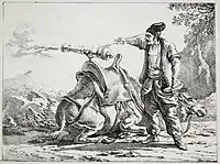 ![]() Artillero persa del siglo XVII disparando un zamburak. | ||