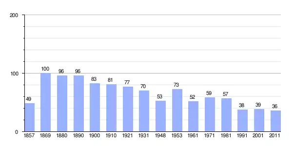 Gráfica de población de Zamost Brodski 1857-2011 |