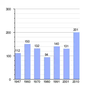 Gráfica de evolución demográfica de Zanjitas[1] entre 1947 y 2010 |