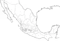 ![]() Distribución natural, (Conabio, 2011, Proyecto global de maíces nativos) | ||