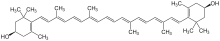 La zeaxantina 4-[18-(4-hidroxi-2,6,6-trimetil -1-ciclohexenil)- 3,7,12,16-tetrametil-octadeca- 1,3,5,7,9,11,13,15,17-nonaenil]- 3,5,5-trimetil-ciclohex-3-en-1-ol Número CAS 144-68-3 es un pigmento liposoluble de color amarillo, del grupo de las xantófilas que aparece en las algas,[1] bacterias[2]y plantas superiores (Zea, Crocus) y en la yema del huevo.[3][4]Su función es la de proteger a la planta contra la radiación solar; esta misma propiedad resulta útil para proteger la retina humana de las radiaciones ultravioleta del sol.