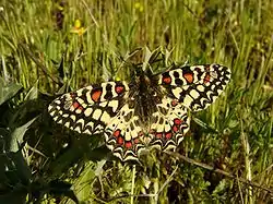 La arlequín[1] (Zerynthia rumina) es una especie de lepidóptero ditrisio de la familia Papilionidae. Debe su nombre español a los motivos y colores de sus alas, que recuerdan los del traje del arlequín.