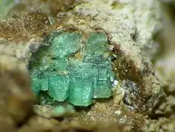 Suele encontrarse asociado a otros minerales como: olivenita, mansfieldita, escorodita, azurita o malaquita.