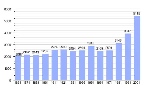 Gráfica de evolución demográfica de Zibido San Giacomo entre 1861 y 2001 |