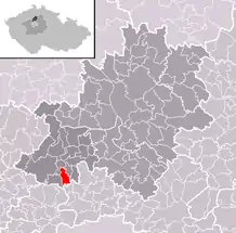 Se encuentra ubicada al norte de la región y de Praga, cerca de la confluencia de los ríos Elba y Moldava, y de la frontera con las regiones de Ústí nad Labem y Liberec.[1]