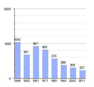 Gráfica de evolución demográfica de Zobnatica entre 1948 y 2011 |