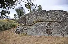 - Peña La Sierpe: antigua explotación minera de Pino del Oro que conserva un gran número de cazoletas, ya que en ellas aparece representado el triturado y lavado del mineral extraído de trincheras cercanas. En la región se conoce a través de la leyenda de la Paya de La Sierpe. Esta cuenta que un pastor alimentó con leche una cría de culebra, estos se convirtieron en amigos inseparables, pero la culebra creció y creció hasta convertirse en una Sierpe, el pastor se sintió amenazado y tuvo que marchar, como constancia de su antigua amistad el pastor labró la figura de la Sierpe en la visera de la Paya[6].
