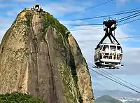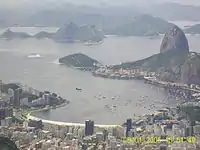![]() El Cristo Redentor, en el barrio Cosme Velho. Detrás, la laguna Rodrigo de Freitas. | ||
