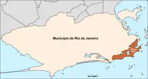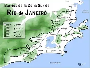 La Zona Sur de Río de Janeiro, Brasil, es una de las doce divisiones municipales establecidas en el Plan Estratégico de la ciudad para el período 2001/2004, que coincide con la Subprefectura de la Zona Sur carioca. Ocupa un territorio de 4.387 hectáreas[1] y está conformado por los barrios Botafogo, Catete, Copacabana, Cosme Velho, Flamengo, Gávea, Humaitá, Ipanema, Jardim Botânico, Lagoa, Laranjeiras, Leblon, Leme, Rocinha, São Conrado, Urca y Vidigal.[2][3]