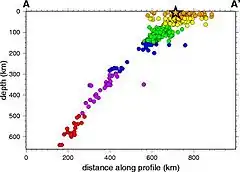 Los terremotos de la zona de Wadati-Benioff se desarrollan debajo de los arcos de islas volcánicas y de los taludes continentales sobre las zonas de subducción activas.[3] Pueden producirse por deslizamiento a lo largo de la falla de cabalgamiento de subducción o por deslizamiento en fallas dentro de la placa descendente, y como resultado de la flexión y extensión de la placa, está es arrastrada hacia el manto.[4] Los sismos de foco profundo a lo largo de la zona permiten a los sismólogos mapear la superficie tridimensional de una placa subducida de corteza oceánica y del manto.