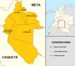 San Vicente del Caguán (Caquetá) La Uribe, Mesetas, La Macarena y Vista Hermosa (Meta) | |||||||||||||||||||||||||||||||||||