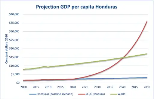 Recientemente, los economistas de la Universidad Francisco Marroquín realizaron un análisis de impacto económico analizando cómo las ZEDEs podrían impactar la economía hondureña. Descubrieron que una ZEDE que se asemeja a las tasas de crecimiento de las Zonas Económicas Especiales de China alcanzaría un PIB per cápita de $ 36,000 para el año 2050.[20]