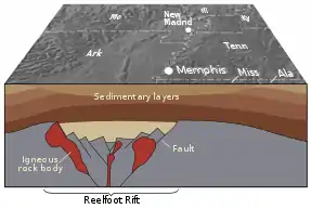 Esta debilidad relativa es importante, puesto que permitiría que las fuerzas compresivas este-oeste relativamente débiles asociadas con la continuación de la deriva continental de la placa norteamericana reactiven antiguas fallas en las cercanías de Nueva Madrid, haciendo que el área sea inusualmente propensa a los terremotos a pesar de estar lejos del límite de placa tectónica más cercano.[16]