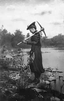 ![]() En 1895, Zonia recolectando fósiles, en Mazon Creek, Illinois, como parte de una clase de geología (Bibl. Universidad de Chicago) | ||