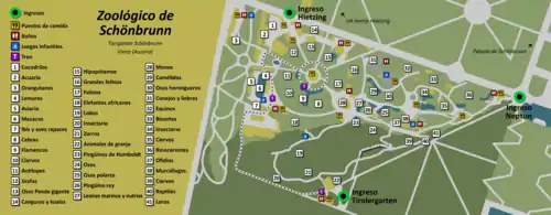 El Zoológico de Schönbrunn[1] (en alemán: Tiergarten Schönbrunn o bien Zoológico de Viena) es un jardín zoológico ubicado en los terrenos del famoso Palacio de Schönbrunn[2] en Viena,[3] la capital de Austria.[4][5] Fundado como una casa de fieras imperial en 1752, es el zoológico más antiguo del mundo. Hoy Tiergarten Schönbrunn se considera y se refiere a sí mismo como un zoológico administrado científicamente que tiene como su principal objetivo ser un centro para la conservación de las especies y la conservación de la naturaleza en general, así como el cumplimiento del mandato de la educación dada a él por la legislación local. Los edificios que se conservan de la época barroca, que se completaron en los últimos años con elementos de la arquitectura moderna, transmiten todavía una buena impresión del siglo XVIII siguiendo el modelo de Versalles.