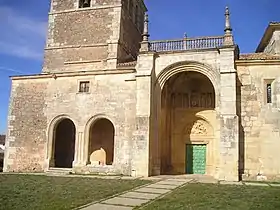 - Iglesia de San Lorenzo: Templo románico de fines del siglo XII que no debió terminarse hasta bien entrado el siglo XIII, como demuestra su portada occidental y la factura de su Apostolado en la portada meridional. La iglesia ha sufrido fuertes transformaciones en siglos posteriores como el acceso principal que se efectúa desde la portada meridional, obra plateresca. Otro añadido es la torre de planta cuadrangular occidental y el coronamiento meridional del gran arco de medio punto abierto al pórtico, que corresponden ya al siglo XVII. Entre el brazo meridional del crucero y el tramo de acceso a la portada se alzó una capilla cubierta con crucería cuya datación se corresponde con la propia portada, hacia inicios del XVI. La iglesia tiene planta de cruz latina con cimborrio sobre el crucero, transepto no sobresaliente en altura y ábside semicircular. La nave longitudinal es de cuatro tramos y cuenta con un presbiterio rectangular. Las bóvedas estrelladas del pórtico apean sobre pilares de perfil tardogótico.