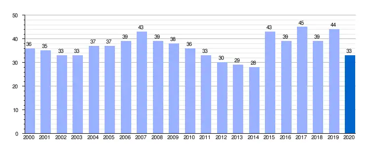 Gráfica de evolución demográfica de Zorita del Páramo entre 2000 y 2020 |