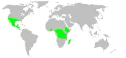 Se encuentran principalmente en África, Madagascar, y Norteamérica. Esta distribución hace suponer que existió una conexión terrestre que se rompió con la deriva continental y la consecuente separación de América y África.