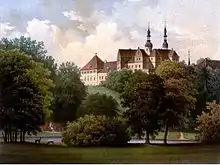 Palacio de Zschepplin en torno a 1860. Edición por Alexander Duncker.